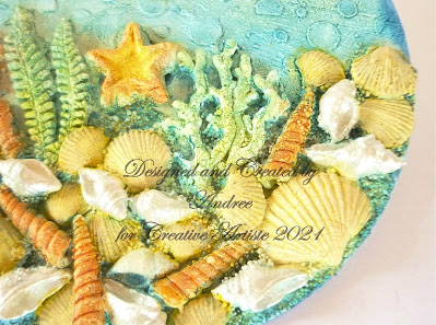 I used paper clay and Katy Sue moulds to make the shells, seahorses, fish and leaves.